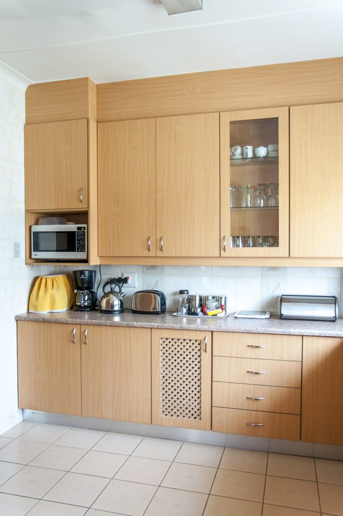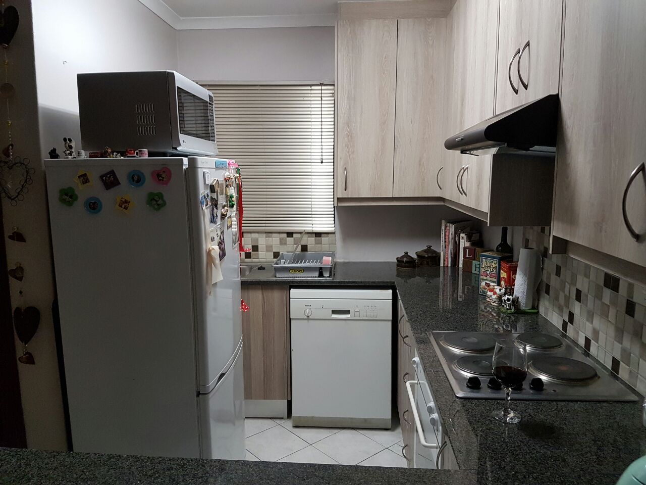 galley kitchen with cherry wrap doors and Rustenberg granite tops