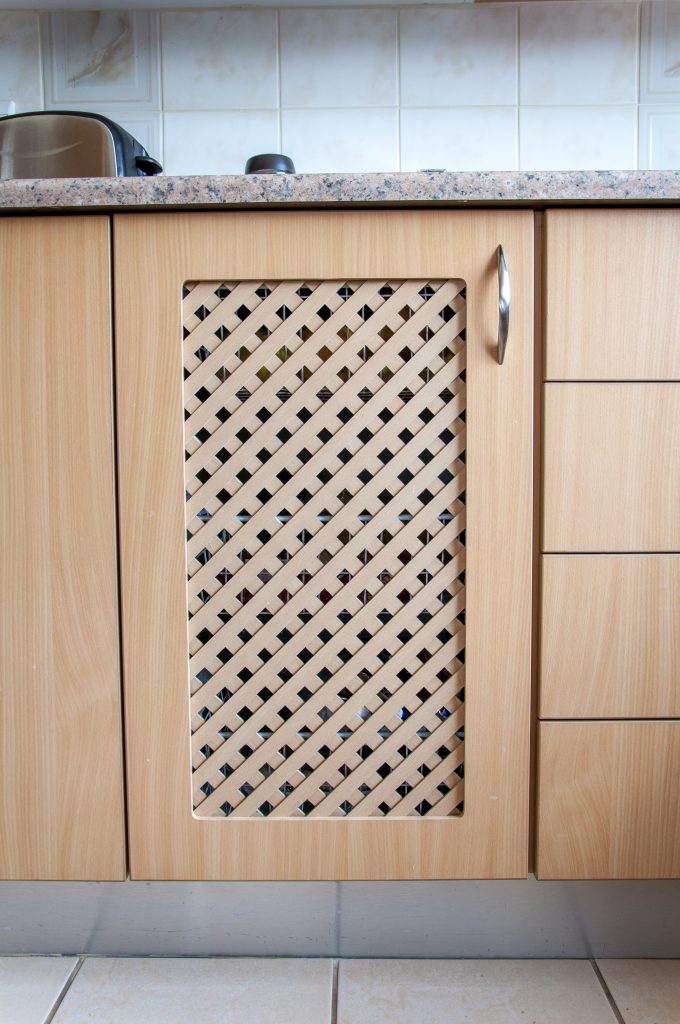 Beech Melamine Impact doors with Formica tops in 'Terracota Granite'